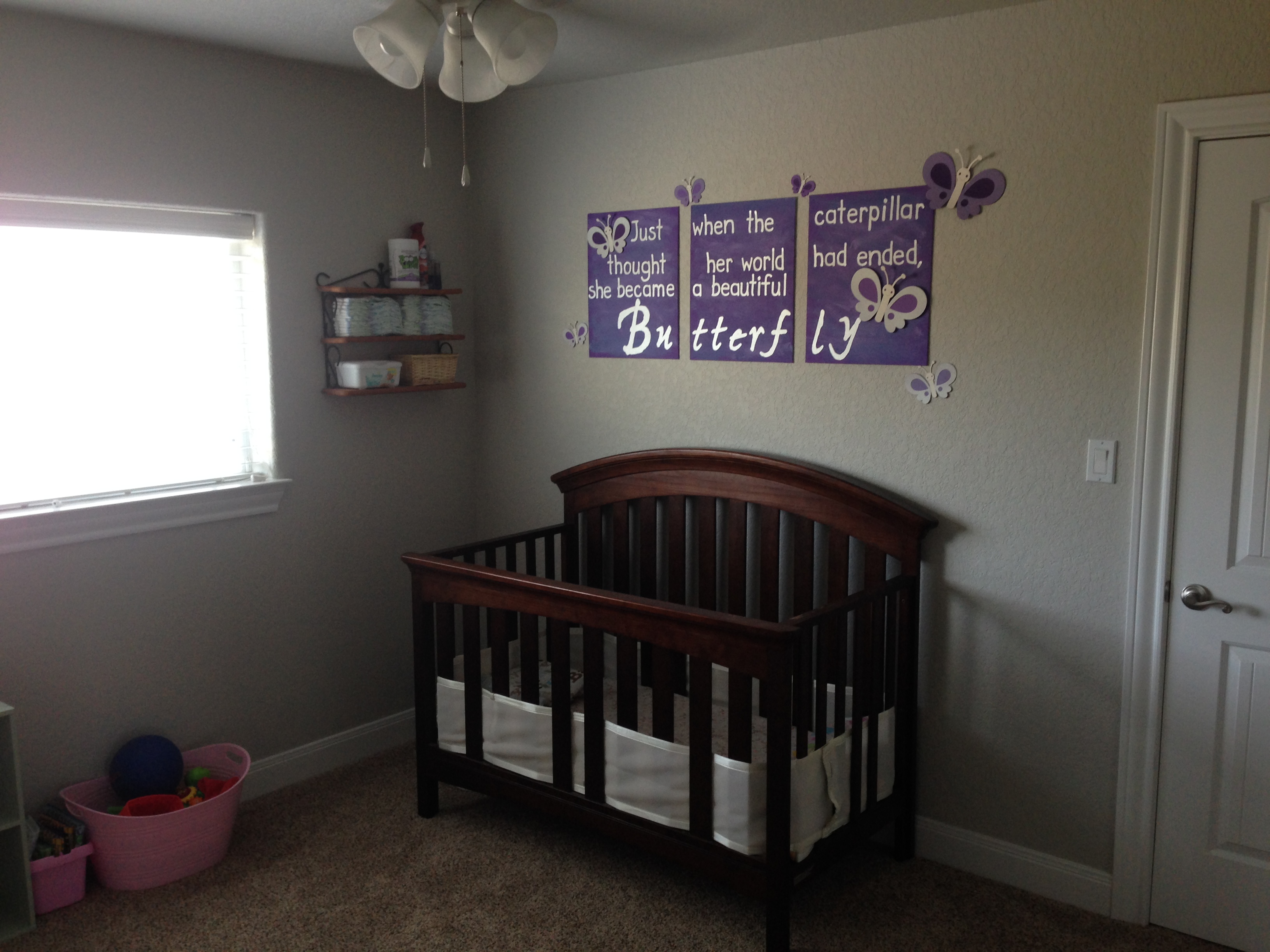 Becca has now been in her “big girl” room for about a week and a half, and she LOVES it! So far we’ve had no inkling of her wanting to move back downstairs. I think that’s thanks in part to the gobs of butterflies I put up everywhere. She loves “boofwys.” And it’s so cute to go in to get her in the mornings and see her big smiling face as she says “boofwys mornin!” HA! Love this girl.