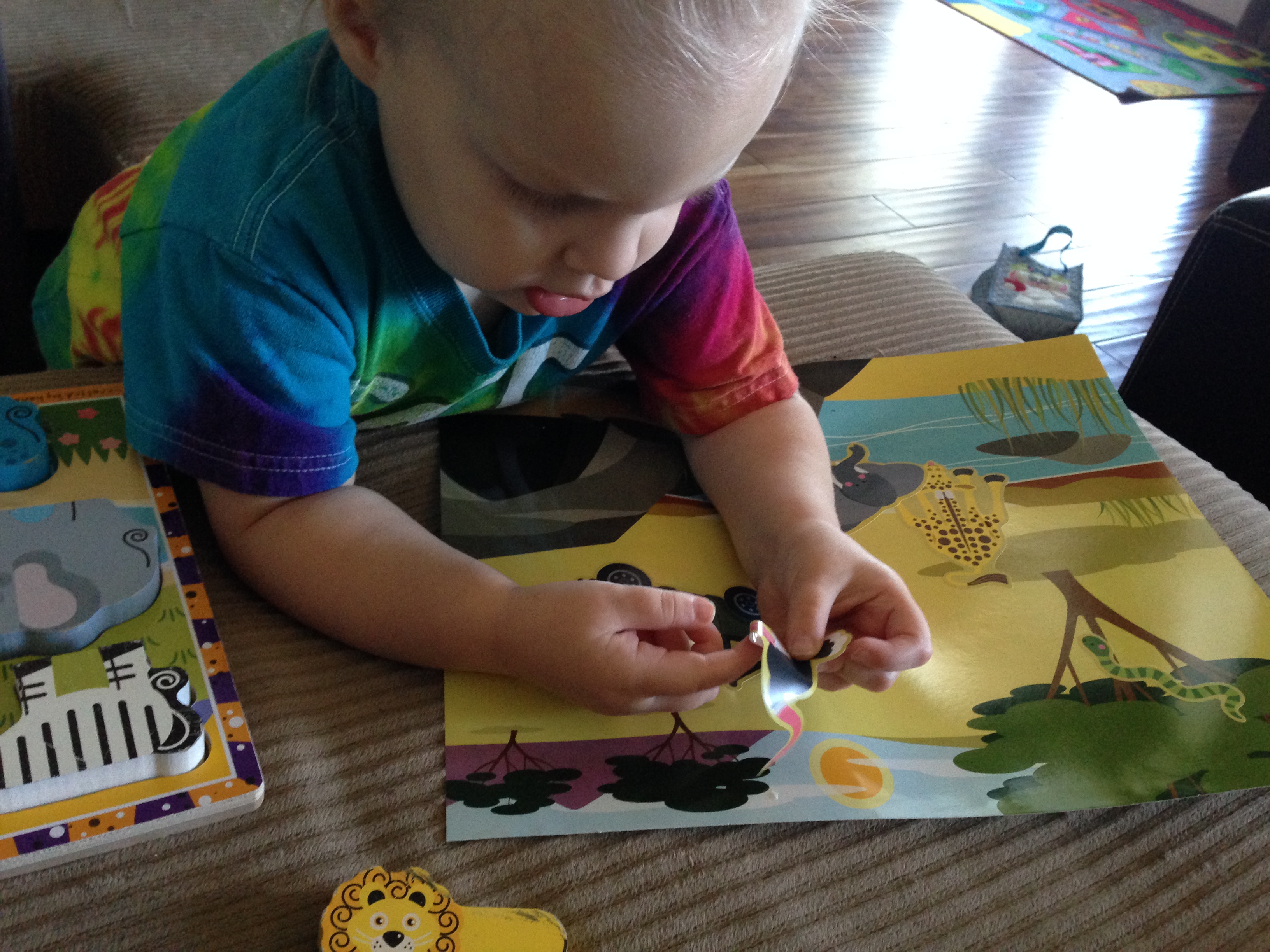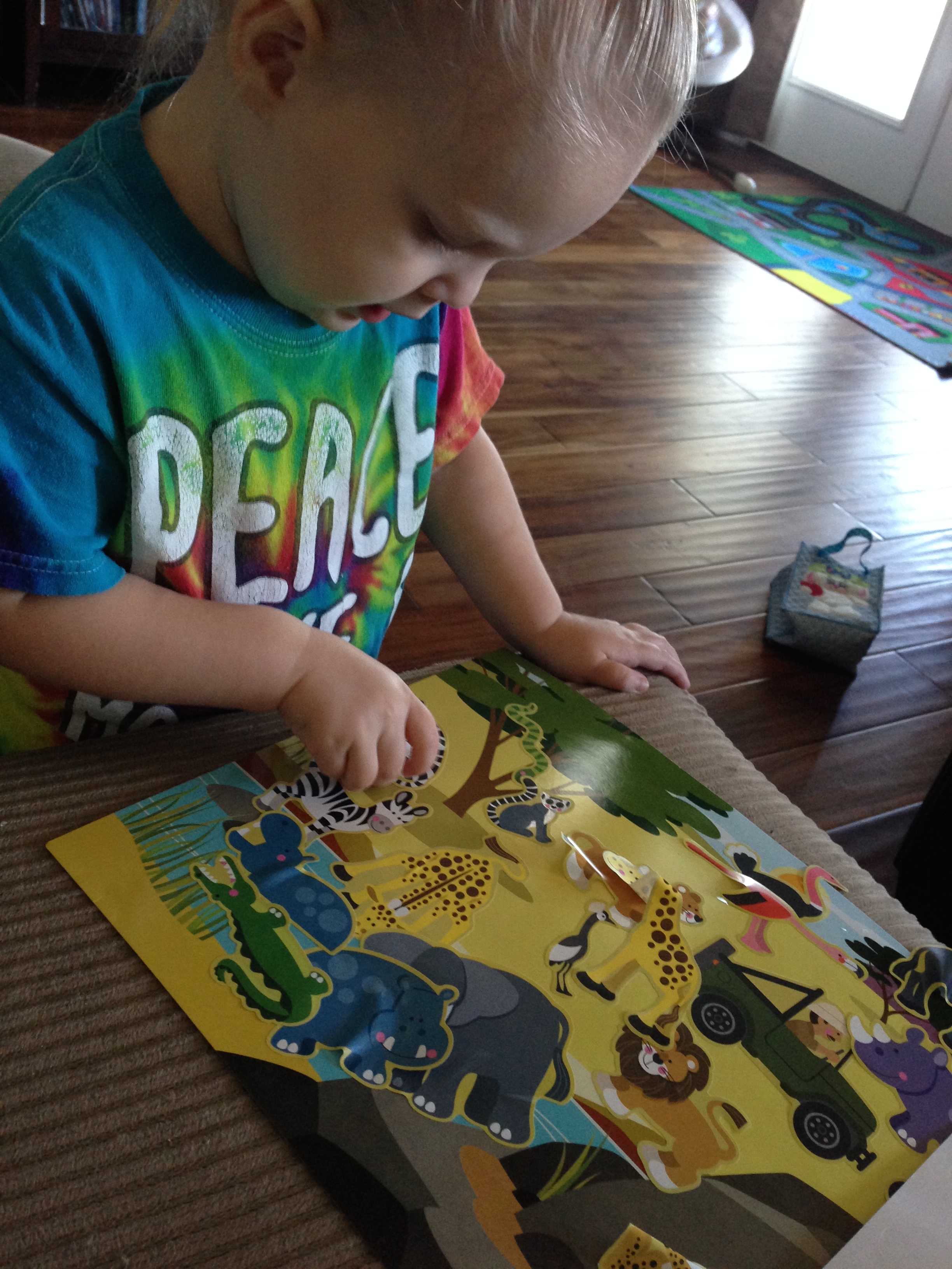 UPDATE: Have a child who really loves safari/zoo animals? Check out the fun project we did today, using this reusable sticker pad and her chunky puzzle! (Get your puzzle here) She started playing with her puzzle, so I went and got the stickers, and she would find the sticker that matched the puzzle piece, make the animal noise, and then place it on! She had so much fun! I also want to get her these Toob animals so that we can further extend our safari play!
