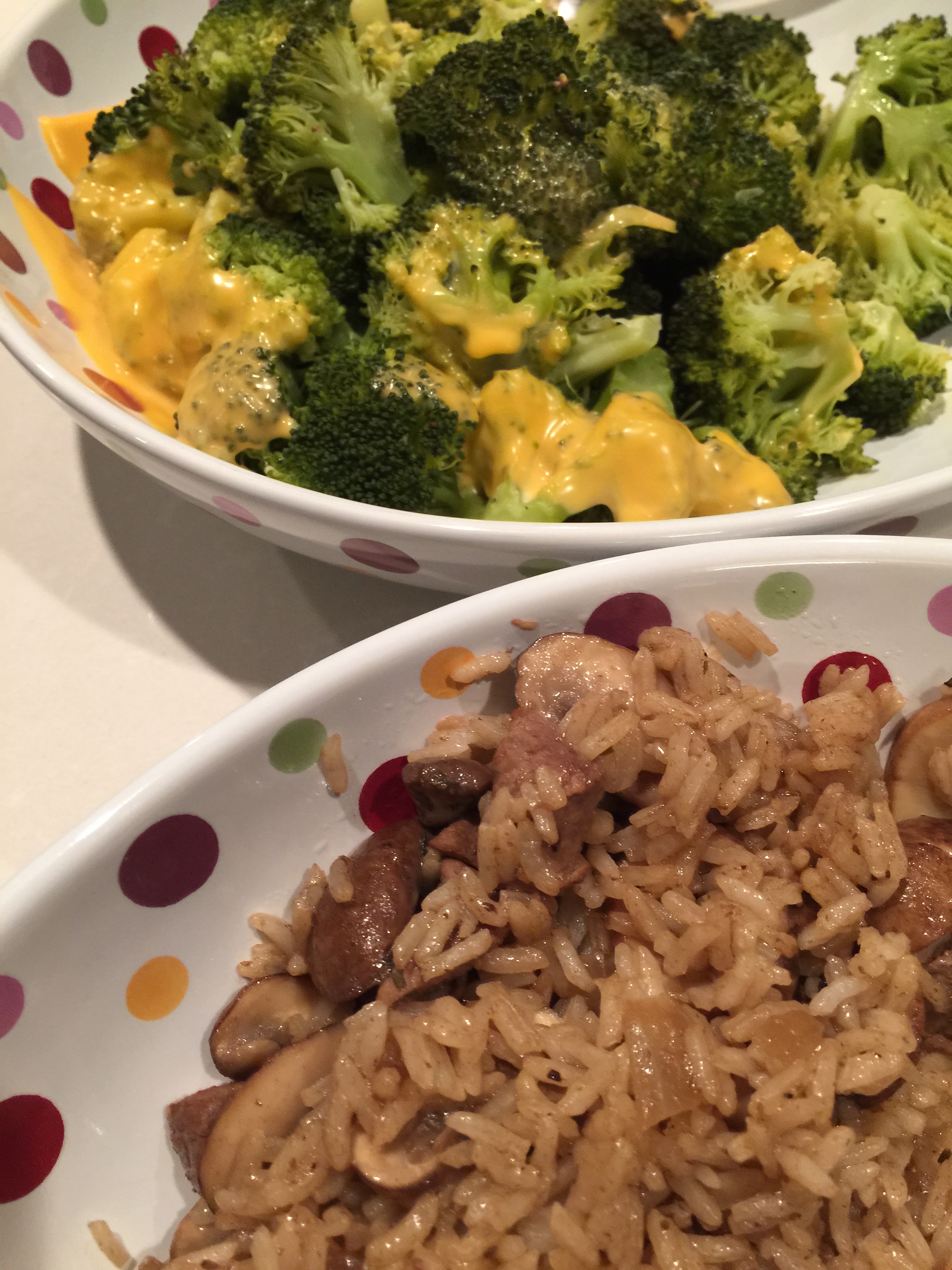 I served mine with steamed broccoli covered in melted cheese. 🙂