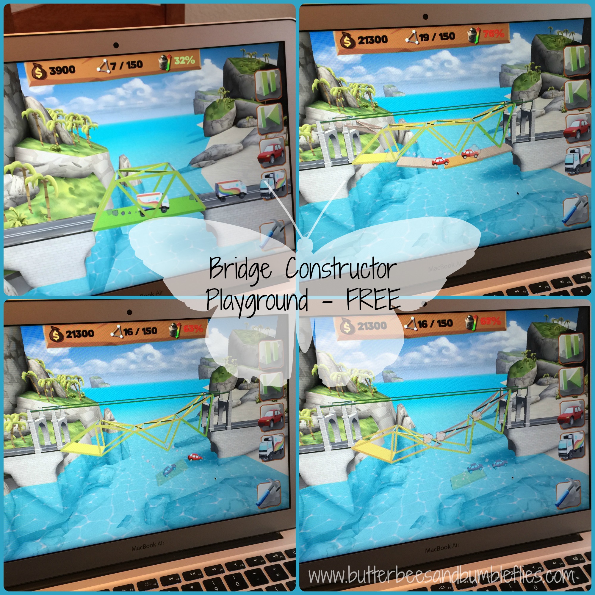Another activity that we have loved recently is the “Bridge Constructor Playground (FREE)” App that I downloaded from the Apple Store onto my MacBook. We really enjoy sitting together and trying to figure out the best materials to build a bridge that is strong and the trucks can cross. It has valuable lessons for kids on strength of materials, strength in shapes (triangle posts are stronger than straight up and down posts), and also is a good way to start introducing the concept that everything takes money… you can’t just spend and spend and spend and expect to have enough money for whatever you want! It’s a great game for young kids to play WITH an adult, or for older more tech savvy kids to play on their own. We haven’t made it past the first island yet, but there are multiple levels of play once you reach certain objectives. We haven’t made it past the first stage yet mainly because we both think it’s fun to watch the trucks/cars fall into the water when a bridge breaks… insert embarrassed Mommy grin here… 😉