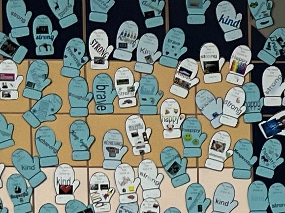 I set up the project in Google Slides, and assigned thru Google Classroom. Because many of my third graders are new to editing in Slides, I set the mitten pattern (with the words “My word for 2024 is:”) as the background of the slide, so it wouldn’t be easy to accidentally delete it. The kids loved learning how to create WordArt colorful fills, and some decided to add clipart or photos that went along with their word, while others just did a theme they like- like dinosaurs, cats, race cars, or their favorite college sports teams. The beauty in each mitten is the individuality, and seeing that while they each selected from a list of the same eight words, there are individual creative touches making each mitten unique, just like it’s designer.