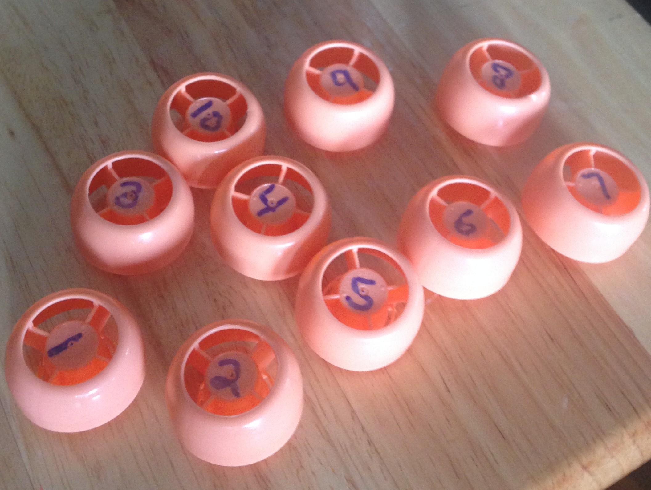Fall Tree Activity – See my blog post yesterday for this fabulous activity – where your child matches numbers to encourage recognition out of order.  And just a side note – you realize you could do any numbers you wanted – it could be 50-70 or 80-100 (although you’d have to write really tiny to fit three digits on the center of one of those lids, you could easily write the number on the side – and go as big as you want!)  OR – what about this extension for your older kids?  Write an addition, subtraction, multiplication, or division problem on the side of the lid, and they have to match it to the answer on the tree!  Again, color coding helps make it a little easier, so if you have two or even three colors of lids that are fall leaf colors, that would be awesome.  Or, make it more challenging by making all your leaves/pouch tops the same color!