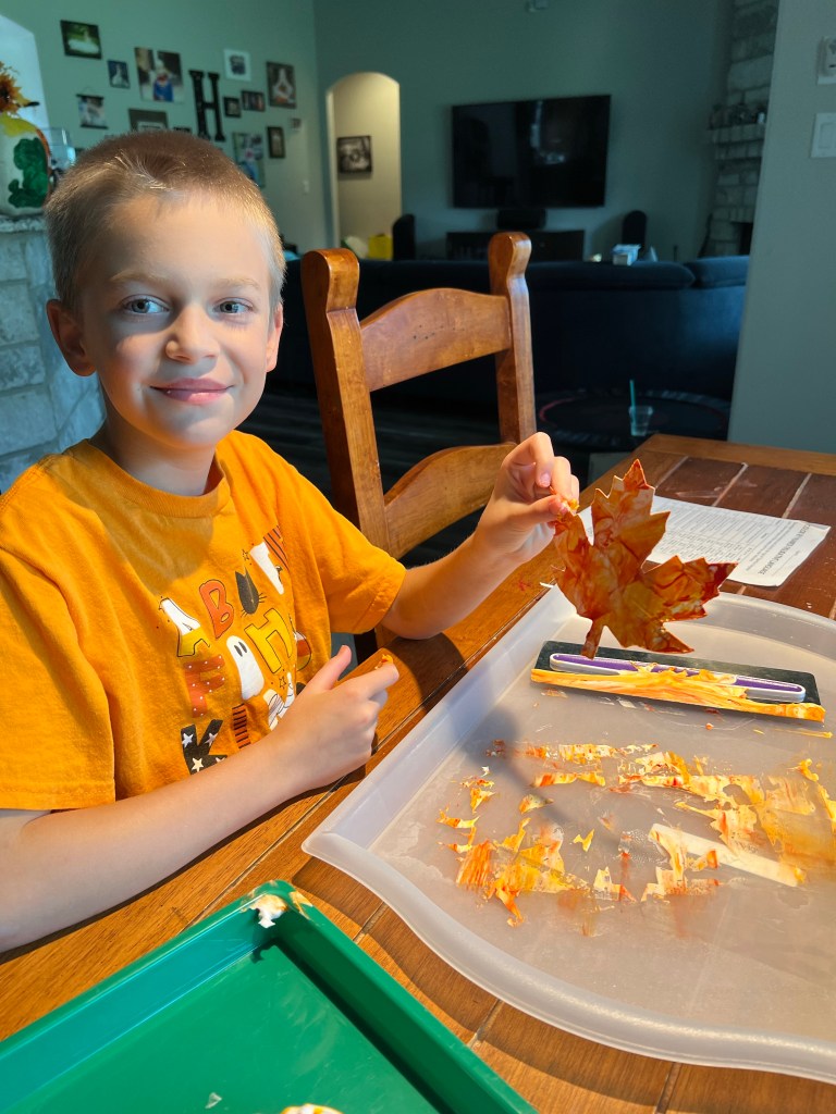 Now that it is completely dry, I’ll use a couple of command strips to hang it in the entry way, where guests can see what we are thankful for! One of the kids asked if this will become an annual Thanskgiving tradition. I’m not sure that I’ll do it EVERY year, but I do have plenty more paint samples, and the leaf template, so who knows?